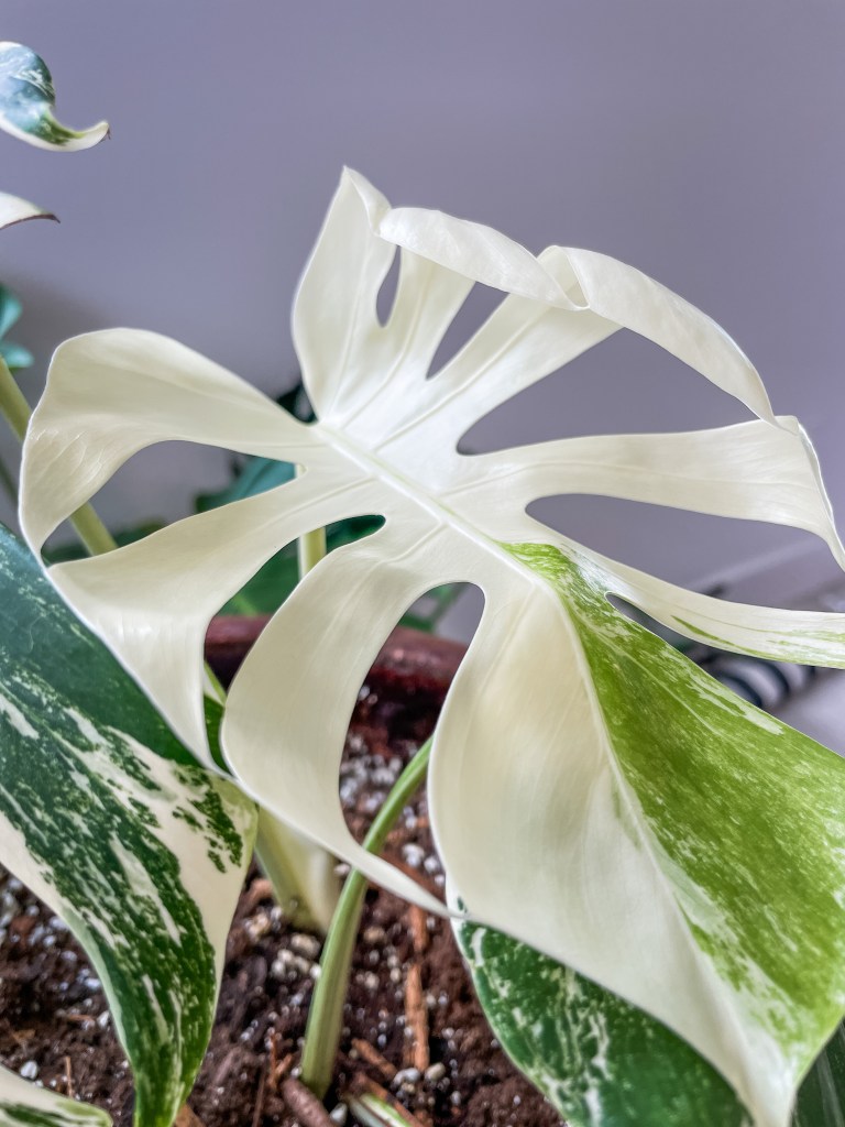 - Light Requirements: Adequate light is crucial for the health of your Monstera Thai Constellation. It thrives in bright, indirect light, making it an ideal candidate for spots near east or west-facing windows. Avoid exposing the plant to direct sunlight for extended periods, as this can cause leaf burns and damage the delicate variegation.