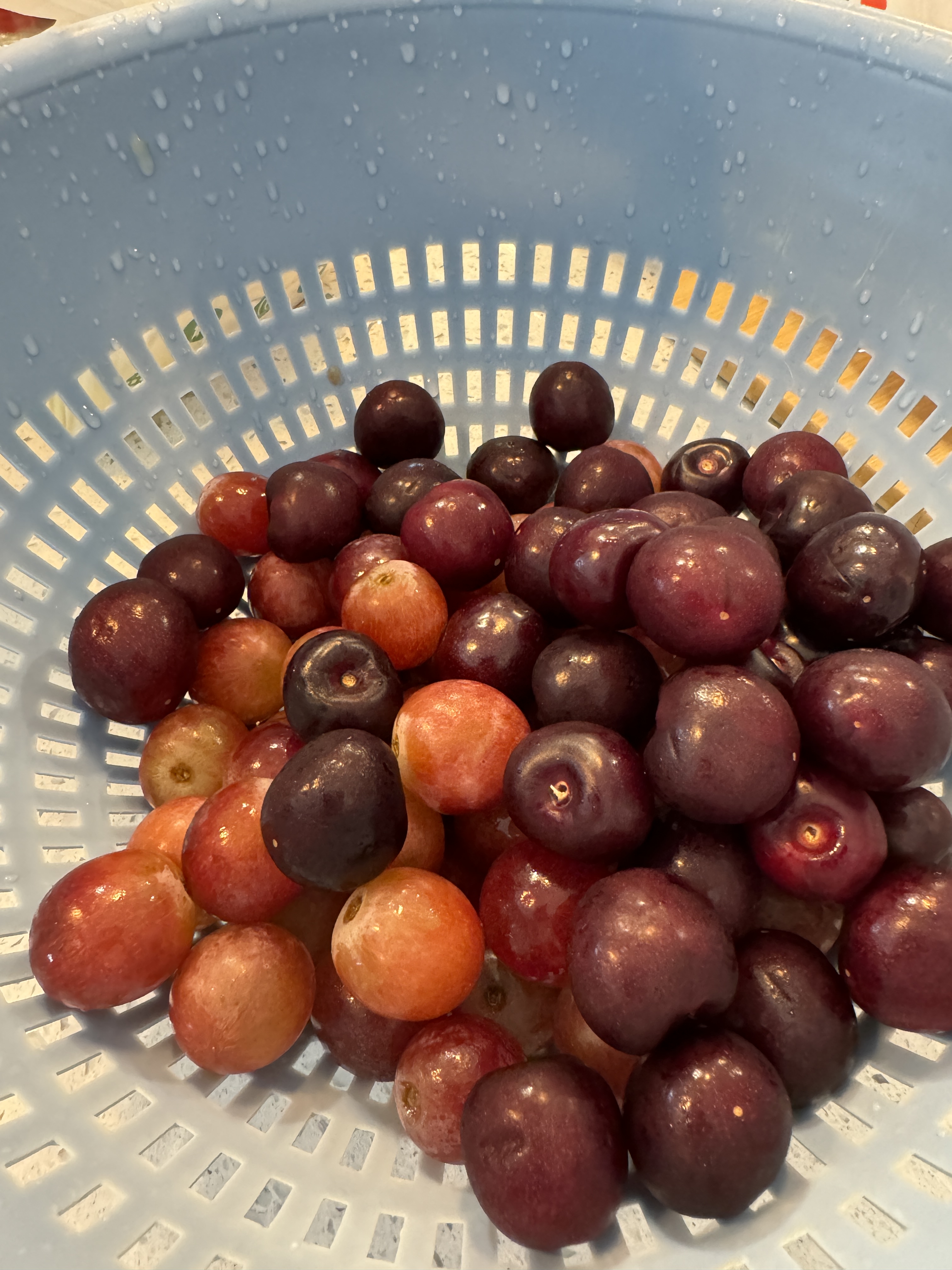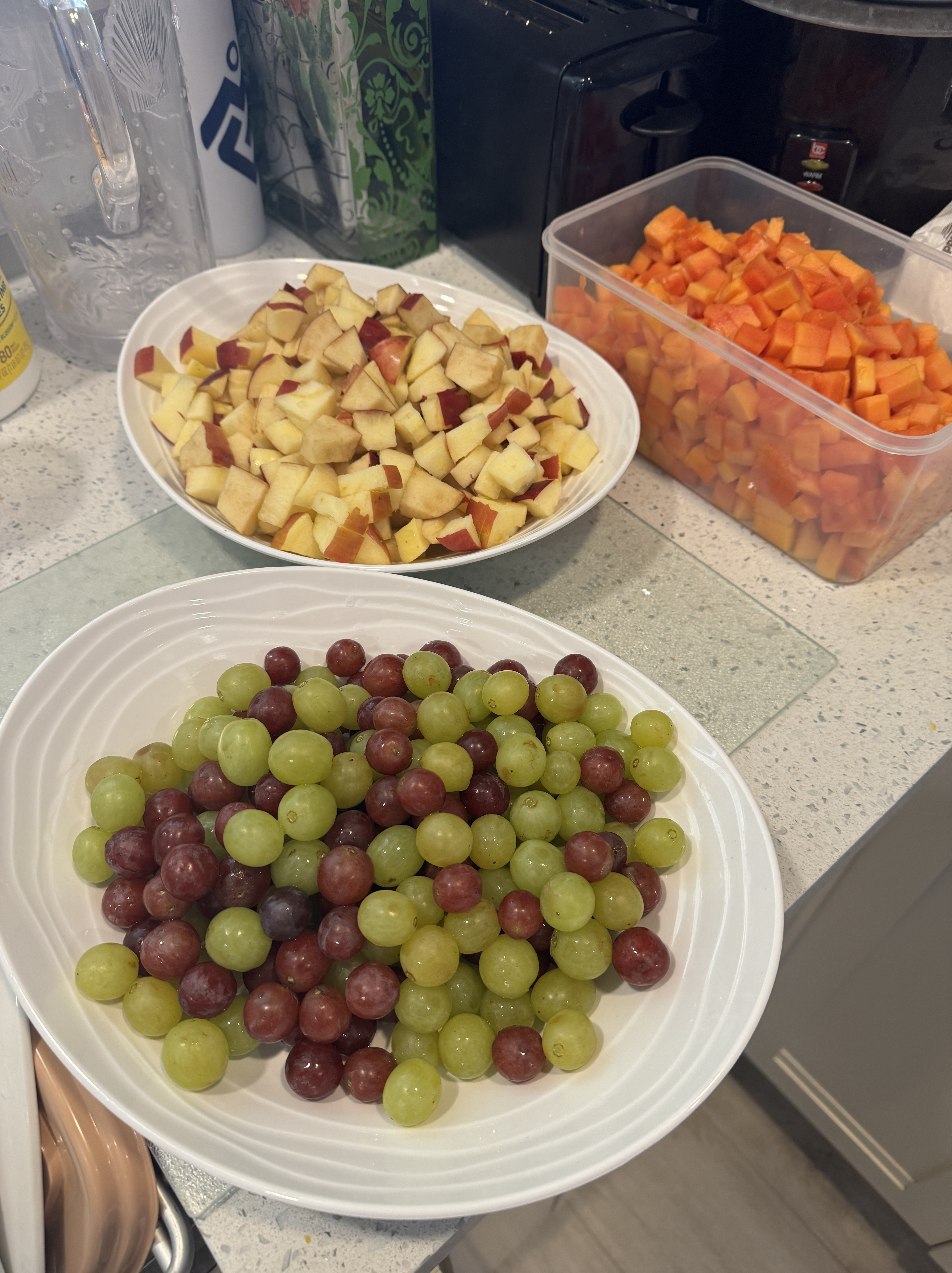 - wash, dry and cut up all of your fruit and sugar cane. remove the pits from any stone fruits you decide to use!